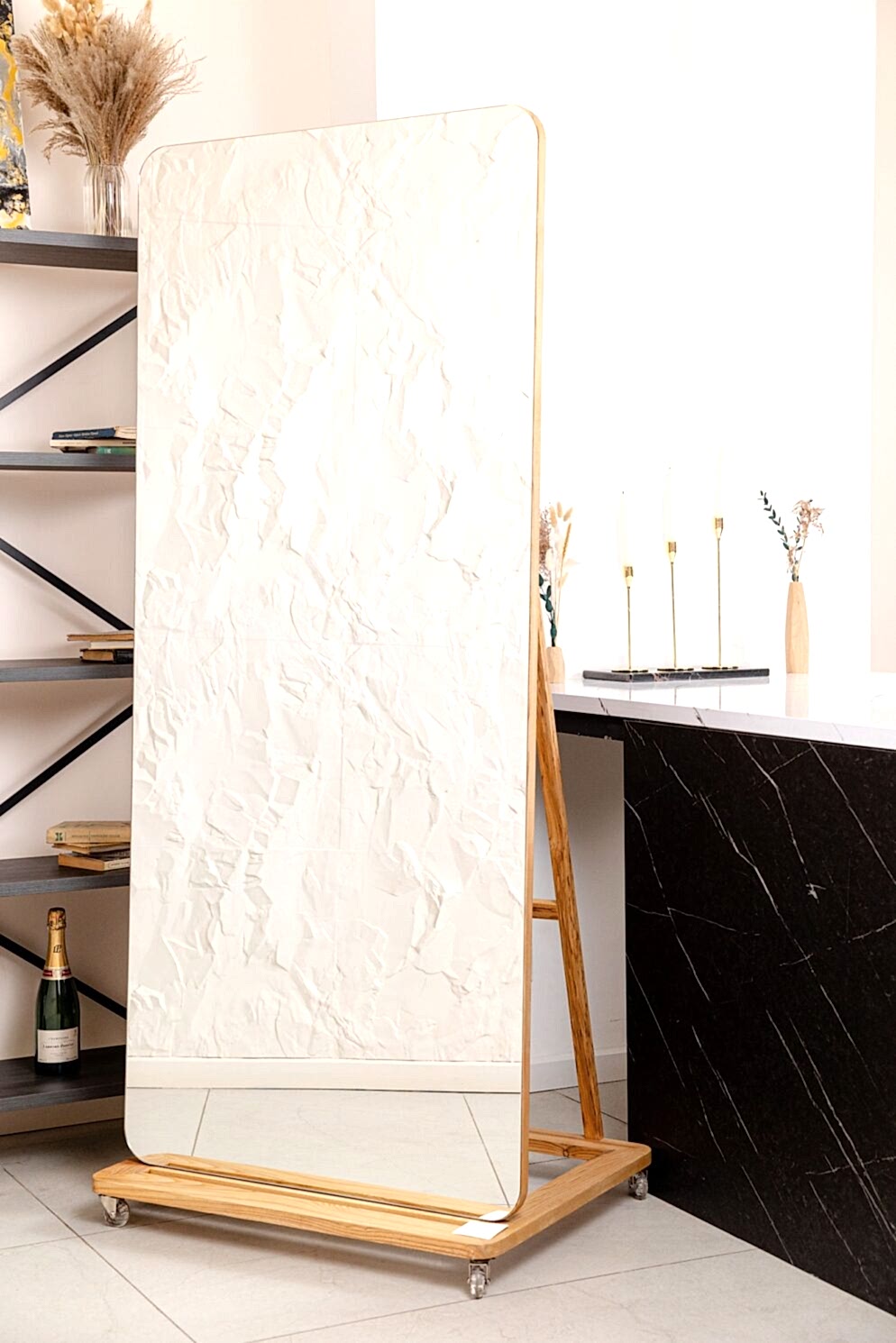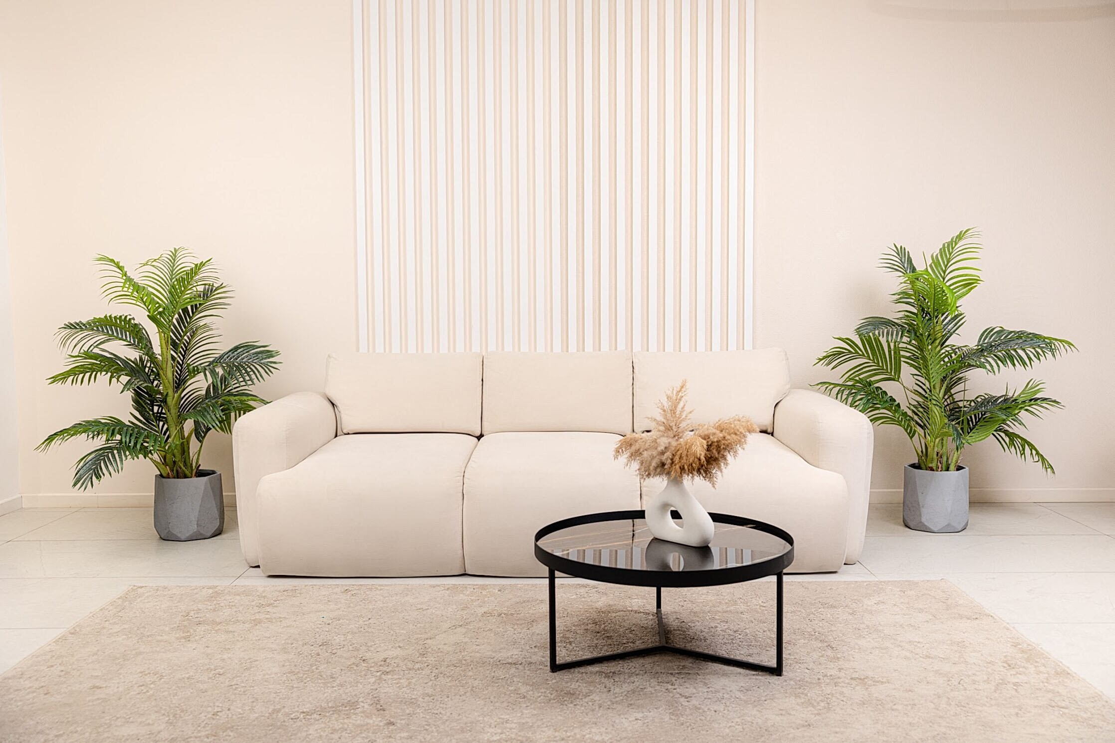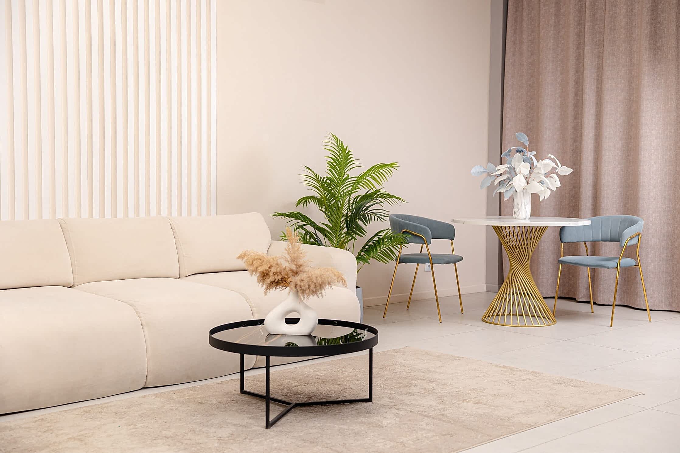Зал с преобладающим бежевым цветом наполнен атмосферой уюта. Элегантный декор будет хорошей локацией для любого вида съемок: портретной, fashion, предметной, свадебной, съемки лукбука и многих других творческих проектов. Он не будет перебивать внимание от главного, а наоборот, выделит вас на своем фоне, делая фото нежным и насыщенным. В зале предусмотрено 3 основных зоны для съемки в фотостудии. Гостиная часть, спальня с кроватью и барная зона.